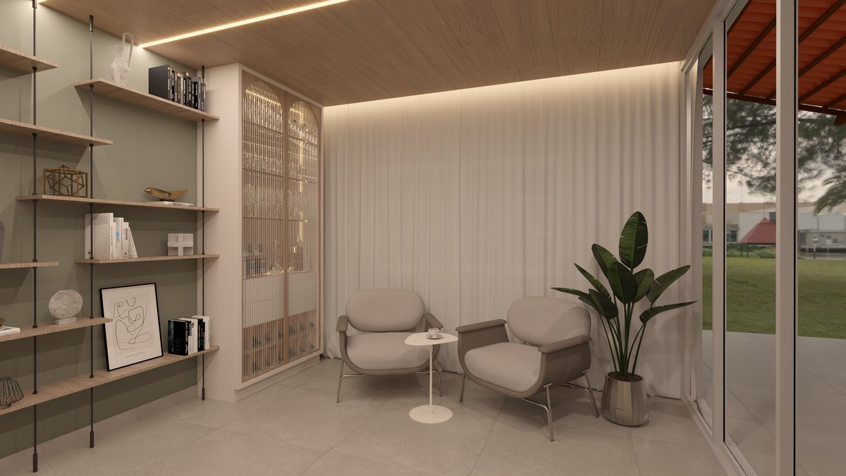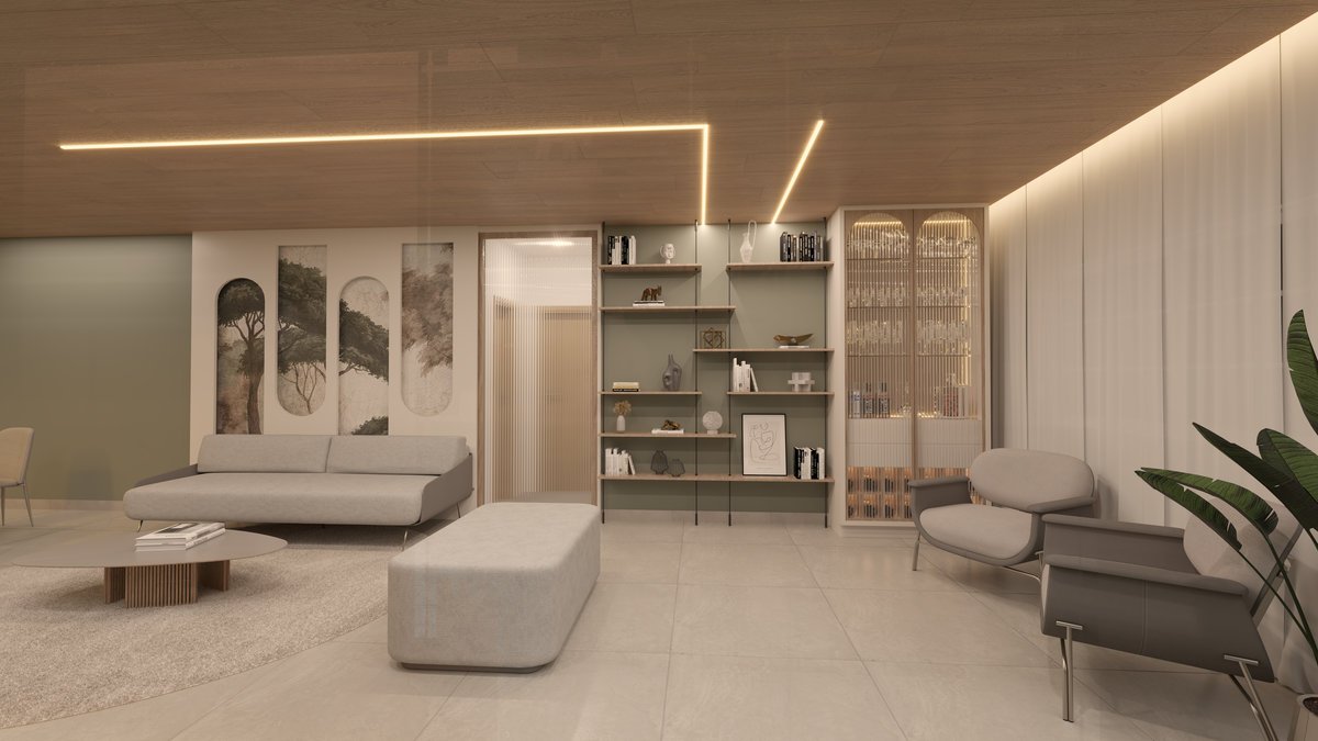 Com mobiliário de linhas suaves, iluminação pontual e texturas naturais, a Sala Floresta convida à contemplação e ao descanso, uma fusão entre design contemporâneo e atmosfera tranquila.