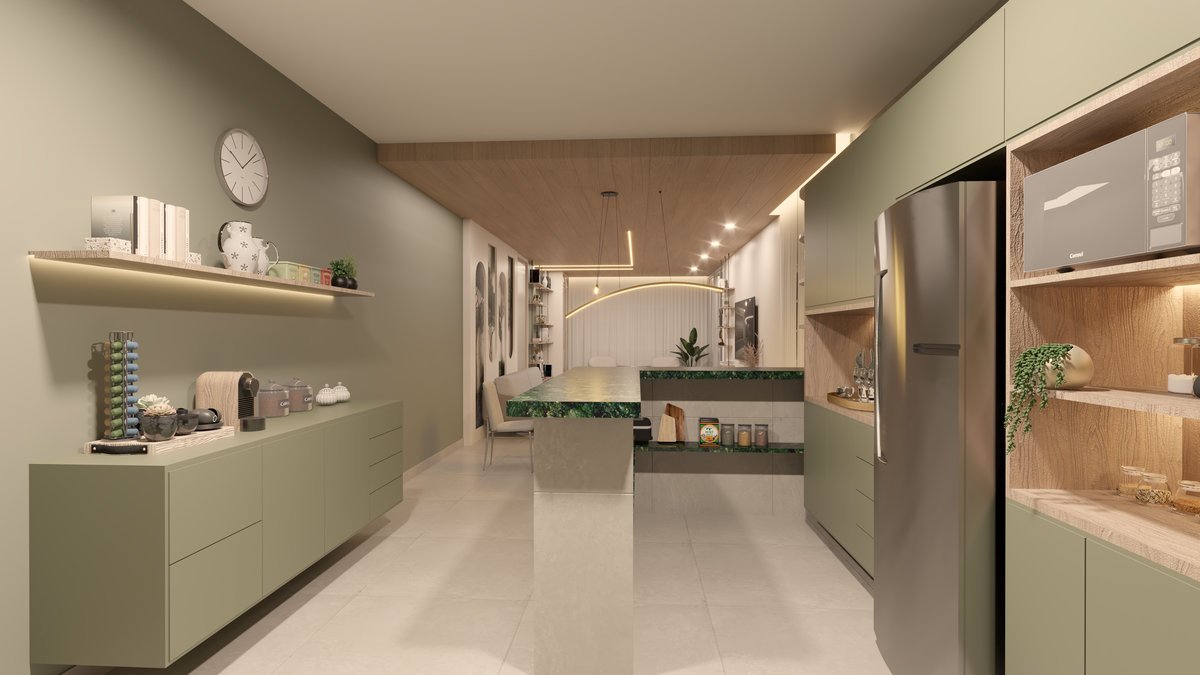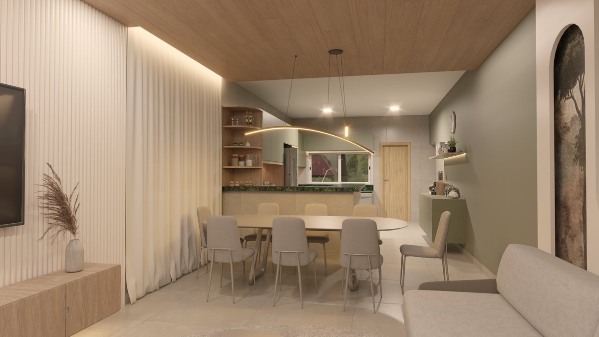 Este projeto teve como foco transformar a sala de estar em um ambiente acolhedor e sofisticado, com forte presença visual e harmonia entre materiais e cores. A escolha da paleta em tons de verde remete à natureza e serviu como ponto de partida para a composição do espaço.